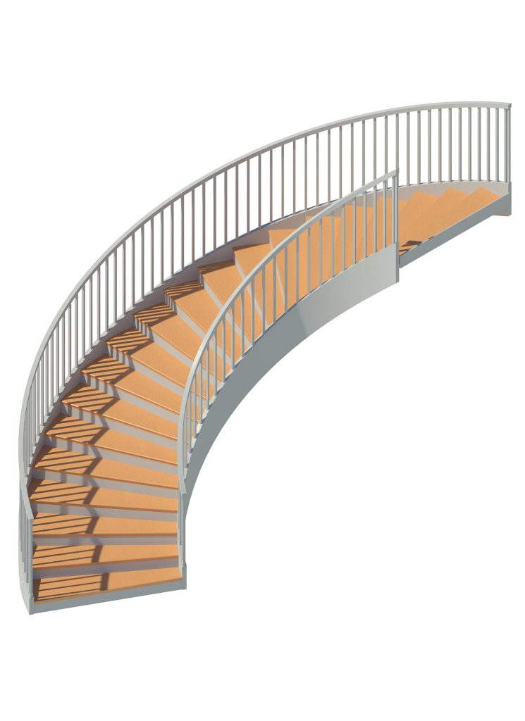 Also called Geometric staircases Helical staircases feature mostly in upmarket residential buildings. Each tread forms part of a curve, so all are winders, however this type of staircase differs from a spiral staircase in that there is a central “open core” rather than a single vertical pillar around which the treads radiate. The overall effect of a helical staircase is graceful and spacious.